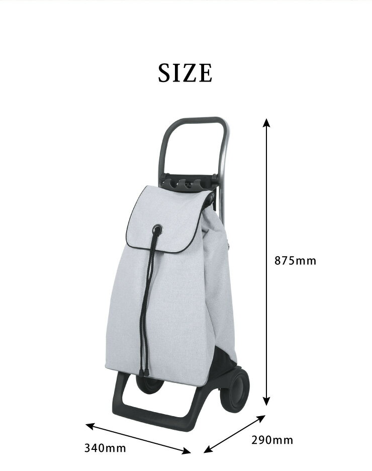 ■W340×D290×H875mm■本体:ポリプロピレン、フレーム:アルミ、車輪:ポリプロピレン・EVA、バッグ本体:ポリエステル、バッグ底板:ポリプロピレン■バッグはリサイクルペット素材のポリエステルを使用しており、地球環境にも配慮したシリーズになります。