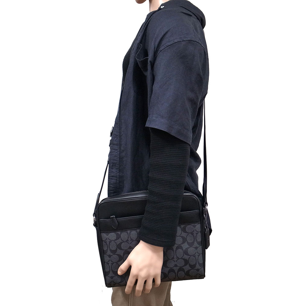 ■商品説明素材PVC×レザーカラーチャコールブラックサイズ(約)縦25cm×横27.5cm×マチ5cm/ショルダー 約最大142.5cm(調節可)付属品なし仕様ファスナー式開閉 / 内側:オープンポケット3/外側:ファスナーポケット1,マグネットポケット1※こちらの商品は、コーチ直営のアウトレットから買い付けた商品です。