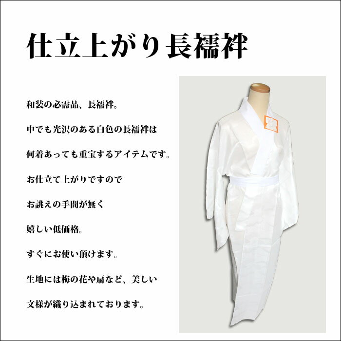 【日本製】仕立上がり 長襦袢 白 綸子織 M/L 洗える 着物 肌着 下着 着付 肌襦袢 半衿 衿芯 ウォッシャブル