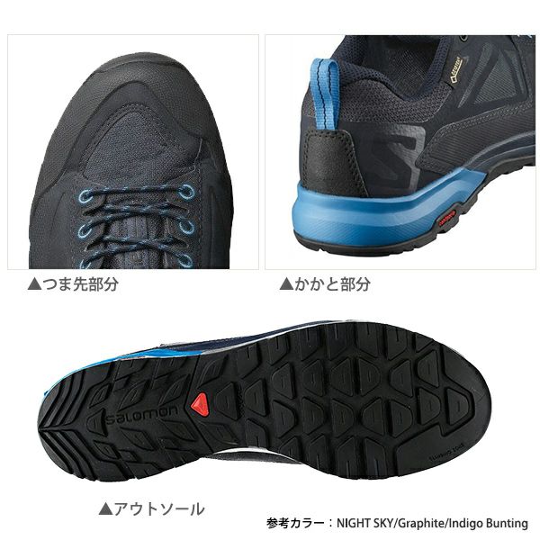 SALOMON サロモン スポーツシューズ トレッキングシューズ ■X ALP SPRY GTX WEIGHT: 331g( 27.0cm) UPPER ・Protective heel cap ・Protective rubber toe cap ・Heel strap ・Gusseted tongue LINING MEMBRANE: GORE-TEX Extended Comfort Footwear LINING MATERIAL: Textile LINING CONSTRUCTION: Waterproof bootie construction SOLE CONSTRUCTION OUTSOLE: Premium Wet Traction Contagrip MIDSOLE: injected EVA / Torsion shank SOCKLINER: Ortholite Molded 軽量でフレックス性に長けた全く新しいアクティブシューズ。