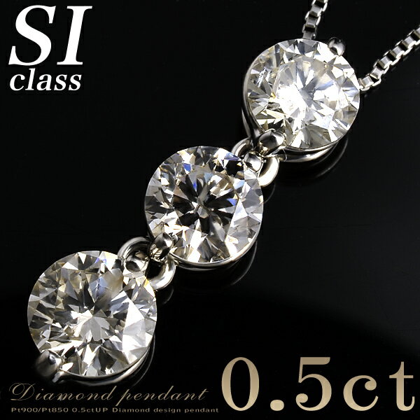 【受注発注品】ダイヤモンド3ストーンペンダントネックレス(チェーン付) 0.5ctUP SIクラス 無色(H〜J) Pt900/Pt850[n9]
